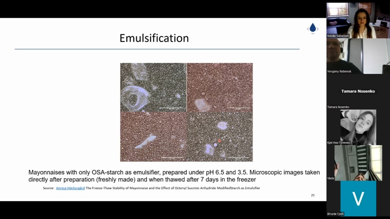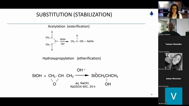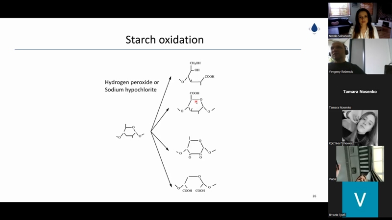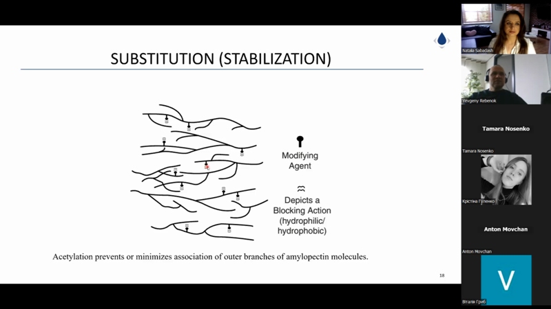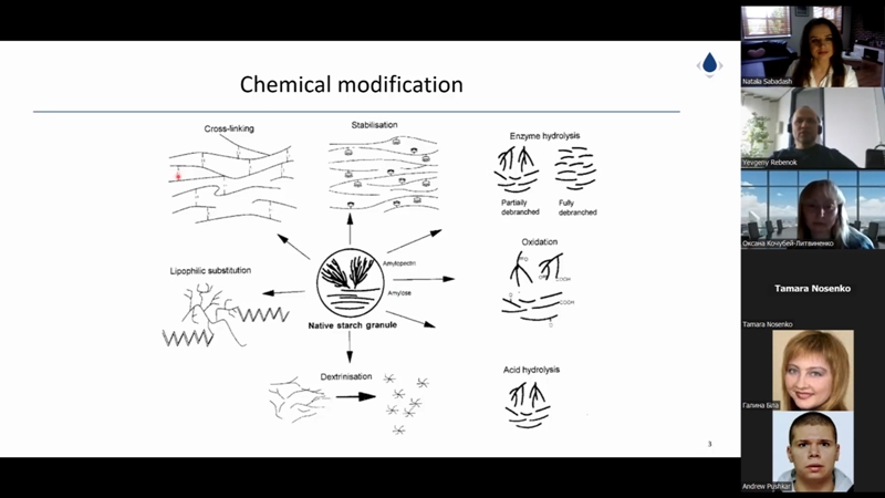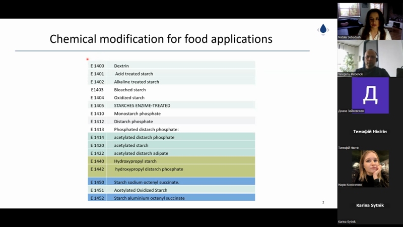 Євген Ребенок вкотре поділився досвідом зі здобувачами та викладачами нашого університету. Цього разу його доповідь була зосереджена саме на хімічних методах оброблення крохмалю та отриманні відповідного класу харчових добавок, що неабияк зацікавило майбутніх хіміків-технологів.