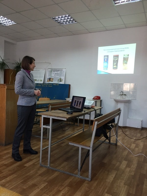 Ніна Кільдій дуже цікаво та професійно оцінила ситуацію з якістю продуктів харчування в Україні в цілому, розповіла про порівняльні дослідження зразків продукції різних виробників, що проводились у Центрі експертиз «ТЕСТ»: молока, вершкового масла, сметани, оливкової та соняшникової олії, червоної ікри, ковбаси. Студенти отримали багато цінних практичних порад, які допоможуть їм не тільки у вивченні дисципліни, але й у здійсненні правильного вибору продуктів харчування для свого споживчого кошику. Як уникнути купівлі фальсифікованої продукції, як перевірити якість продукту в домашніх умовах, яким має бути маркування продукту – вичерпну інформацію майбутні екологи отримали від Ніни Кільдій.