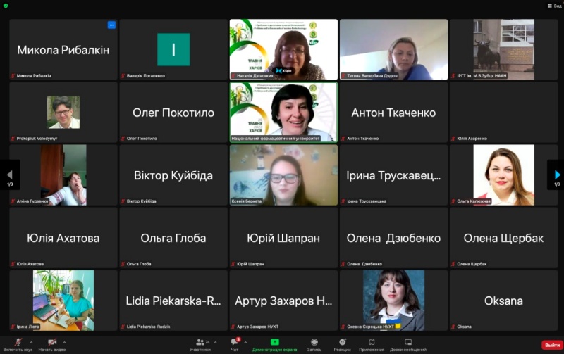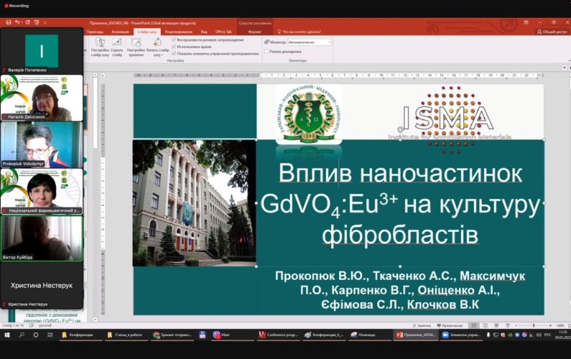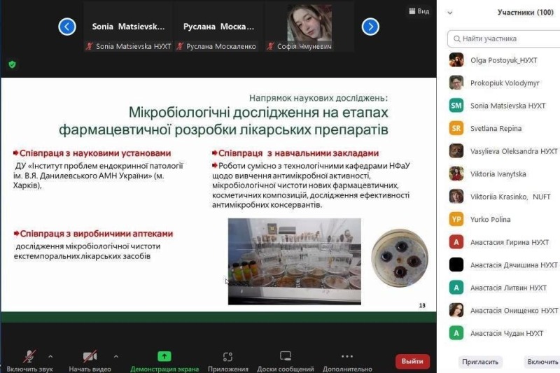 Відкривала конференцію завідувачка кафедри біотехнології Національного фармацевтичного університету Наталя Хохленкова, яка привітала усіх учасників і побажала їм терпіння та наснаги у цей нелегкий час. Дуже приємно, що пані Наталя привітала колектив нашої кафедри зі знаменною подією – отриманням зразкової акредитації освітньо-наукової програми «Біотехнологія» третього освітньо-наукового рівня.