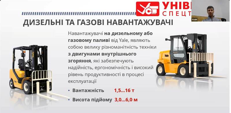 Доповідач докладно ознайомив слухачів із різними видами навантажувачів і складської техніки від провідних світових брендів. Лектор розповів про напрямки і широкий спектр послуг гарантійного та післягарантійного обслуговування, а також поділився великим накопиченим досвідом роботи та інноваційними підходами до формування основних якостей майбутніх інженерів.
