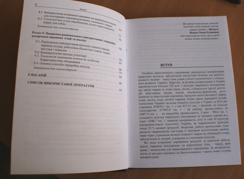 У книзі наведена характеристика вторинної сировини м'ясної галузі, описані методи її збирання та перероблення для отримання лікувальних, кормових і технічних продуктів. Наведені дані біологічної цінності, хімічні і фізичні властивості вторинної сировини та відходів м'ясної галузі. Розглянуті процеси перероблення, шляхи раціонального використання вторинної сировини з наведенням обладнання, температурних режимів, вимог до якості, як сировини, так і готової продукції згідно з діючими нормативними документами. Значна увага акцентована на безвідходні і маловідходні технології перероблення вторинної сировини, отримання біогазу з відходів виробництва (стічних вод, гною та посліду).