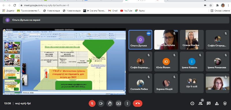 Модератори зустрічі концентровано представили до уваги присутніх переваги здобуття вищої освіти першого (бакалаврського) рівня у нашому університеті: проактивний науково-педагогічний колектив, співпраця зі стейкхолдерами для удосконалення освітньо-професійної програми «Готельно-ресторанна справа», сучасна матеріально-технічна база, практика у провідних вітчизняних готельних підприємствах із перспективами працевлаштування за фахом і кар’єрного зростання, міжнародна практика у курортних готелях Республіки Болгарія.