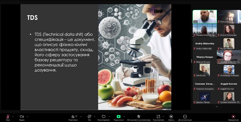 У рамках опанування дисциплін «Регулювання використання харчових добавок та гармонізація Європейських регламентів в Україні на шляху Євроінтеграції» для здобувачів освітнього ступеня «Магістр» освітньо-професійних програм «Технології хліба, кондитерських, макаронних виробів та харчоконцентратів» і «Технології органічних харчових продуктів» та «Харчові добавки: гармонізація регламентів ЄС у виробництві молочних і молоковмісних продуктів» для здобувачів освітнього ступеня «Магістр» освітньо-професійної програми «Технології зберігання, консервування та переробки молока» традиційно відбулася лекція, яка закріплена в рамках цих дисциплін за керівником відділу індустріальних продажів компанії «Бест вей фудз» Іваном Зоренком.