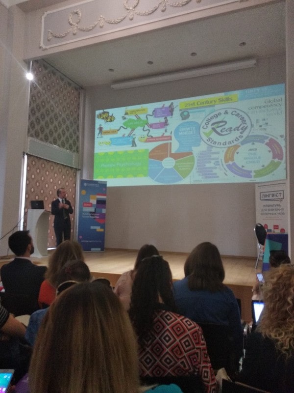 Метью Ельман, регіональний тренер «Cambridge University Press», у своїй доповіді звернув особливу увагу на вплив технологій на навчальне середовище та дав цінні поради щодо того, як викладачам реагувати на ці зміни не тільки сьогодні, але й у майбутньому.