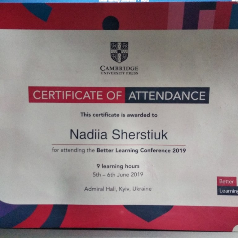 Викладач кафедри іноземних мов професійного спрямування Надія Шерстюк відвідала «Better Learning Conference» – одну з найавторитетніших конференцій у викладанні англійської мови як іноземної, яка відбулася 5-6 червня в Києві та була організована «Cambridge University Press» і компанією «Лінгвіст». Освітяни мали унікальну нагоду послухати доповіді, відвідати воркшопи спікерів із Кембриджського Університету та провідних українських викладачів.