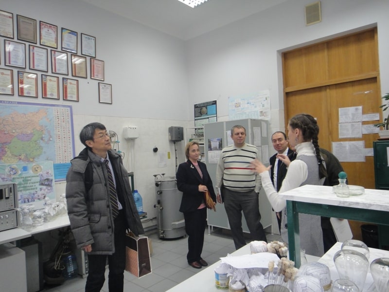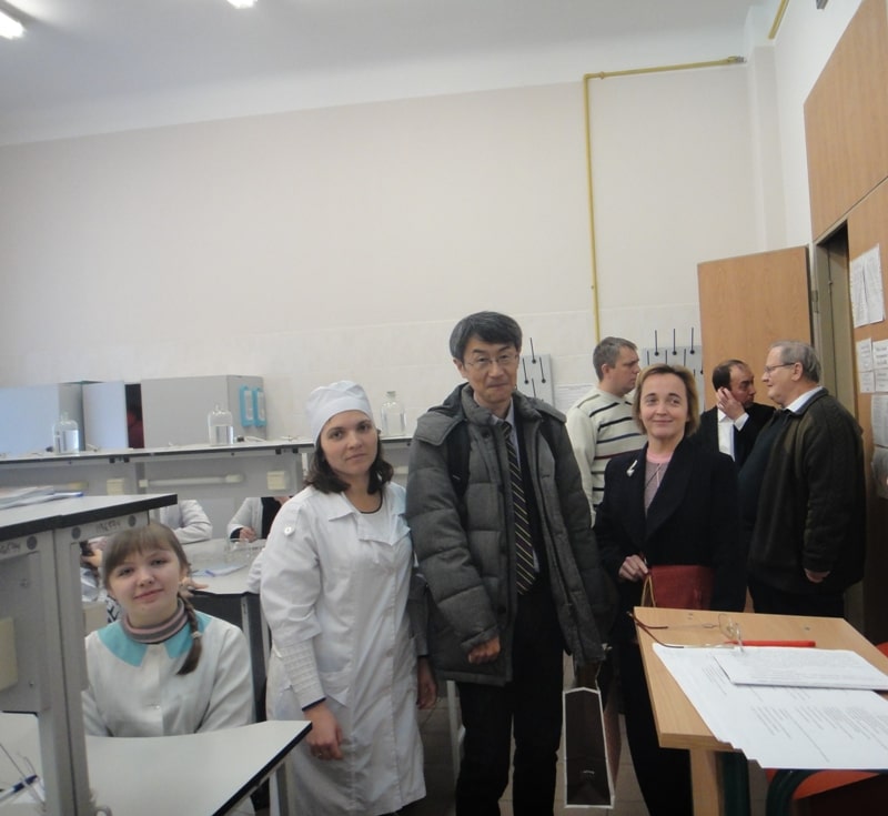 Опісля лекції викладачі та магістранти кафедри біотехнології та мікробіології провели японському гостеві цікаву екскурсію по кафедрі та Проблемній науково-дослідній лабораторії, під час якої Сатору-сан познайомився з особливостями студентського життя-буття в НУХТ: і на лабораторній роботі побував, і побачив, як третьокурсники пишуть модульну контрольну, і почув, як добре наші підопічні володіють англійською мовою та прийомами наукових досліджень у галузі.