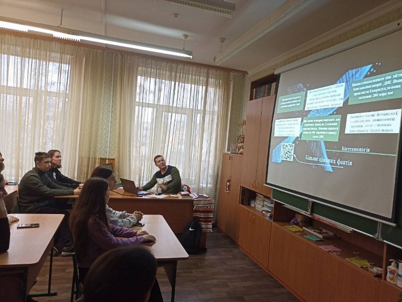 Днями відбулася профорієнтаційна зустріч здобувача освіти першого курсу магістратури Ростислава Коваля з учнями 10 класу школи №211 міста Києва, під час якої він детально розповів учням про усі переваги навчання на кафедрі біотехнології і мікробіології.