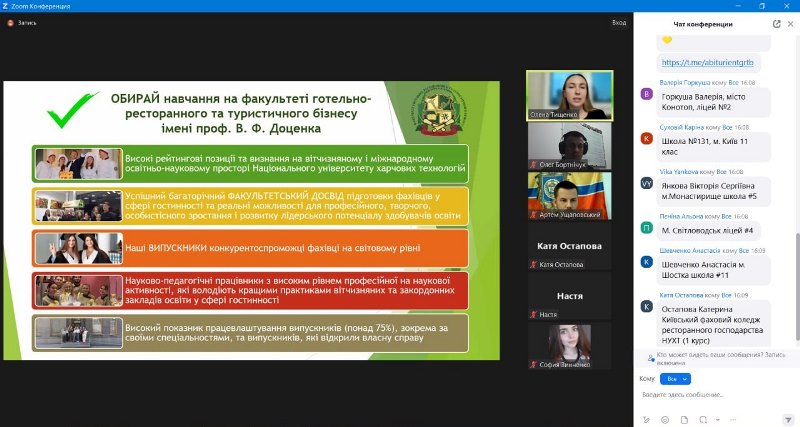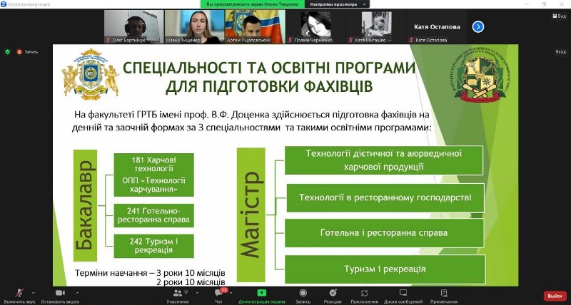 Профорієнтаційна зустріч із абітурієнтами відбулася на факультеті готельно-ресторанного та туристичного бізнесу імені проф. В .Ф. Доценка у режимі online.