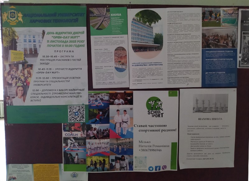 9 листопада професор кафедри технології ресторанної і аюрведичної продукції факультету готельно-ресторанного та туристичного бізнесу імені проф. В.Ф. Доценка, гарант освітньої програми «Технології харчування» Олег Кузьмін побував у школі І-ІІІ ступенів №84 м. Києва. Метою візиту було запрошення старшокласників на День відкритих дверей нашого університету, що відбудеться 11 листопада 2023 року, для залучення випускників до вступу до НУХТ.