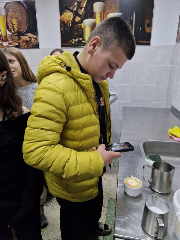 Найкращі амбасадори НУХТ – наші здобувачі освіти, адже Діанка повністю заволоділа увагою школярів, не тільки навчила їх готувати кавові напої, створювати креативні візерунки на поверхні кави, а й зацікавила індустрією гостинності.