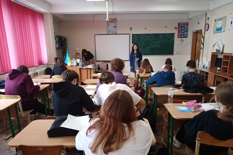 4 жовтня доцентка кафедри іноземних мов професійного спрямування Ганна Бойко зустрілася з учнями старших класів середньої школи І-ІІІ ступенів № 245 Оболонського району міста Києва.