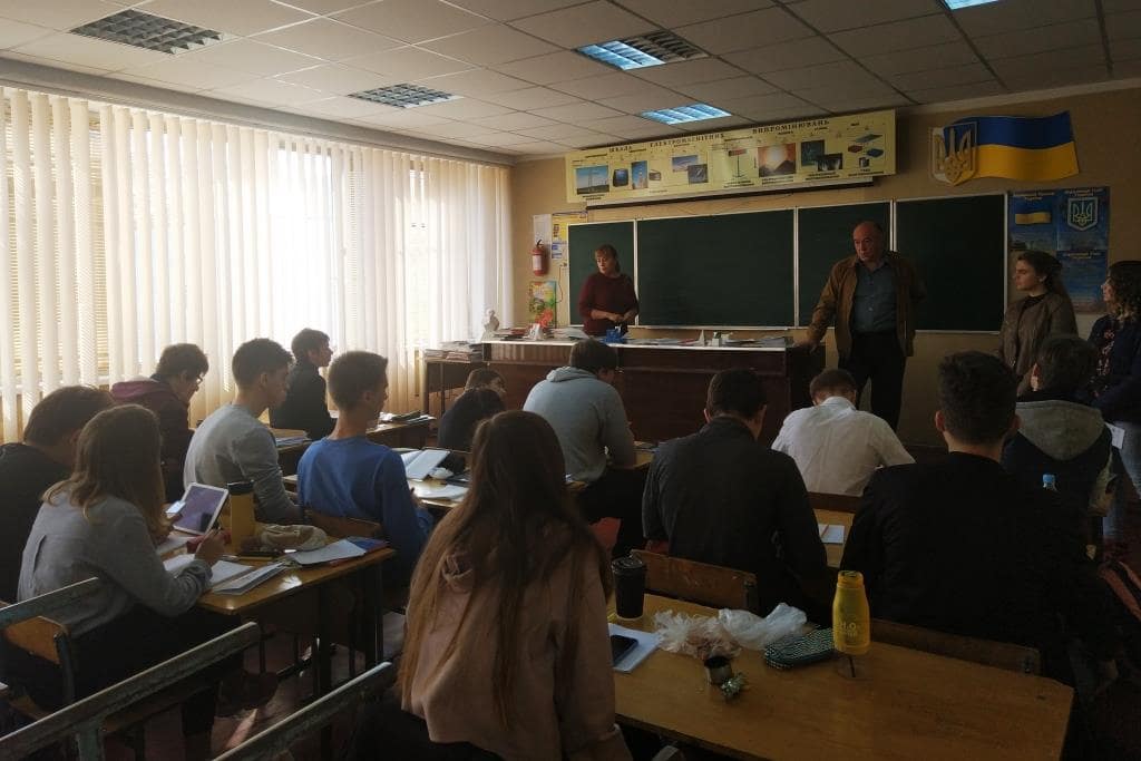 Не стала винятком й давній партнер університету, гімназія «Потенціал», яку цим прекрасним, сонячним днем відвідали доцент Олександр Воронцов та асистент Тетяна Белемець у супроводі юних біотехнологів – колишніх випускників гімназії, а нині студентів кафедри – Валерії Потапенко та Ірини Мармаш. Представники адміністрації гостинно супроводили наших викладачів і студентів на зустріч із учнями випускних класів, де наш дружній профорієнтаційний десант у вигляді діалогу поспілкувався з майбутніми вступниками й розповів, «що таке біотехнологія і з чим її їдять» та про унікальну можливість саме у нашому університеті набрати більшу кількість балів під час вступу – олімпіади з біології, хімії та математики. Після закінчення дискусії зацікавленим школярам були роздані рекламні матеріали, а наші студенти з радістю відповіли на усі їх запитання.