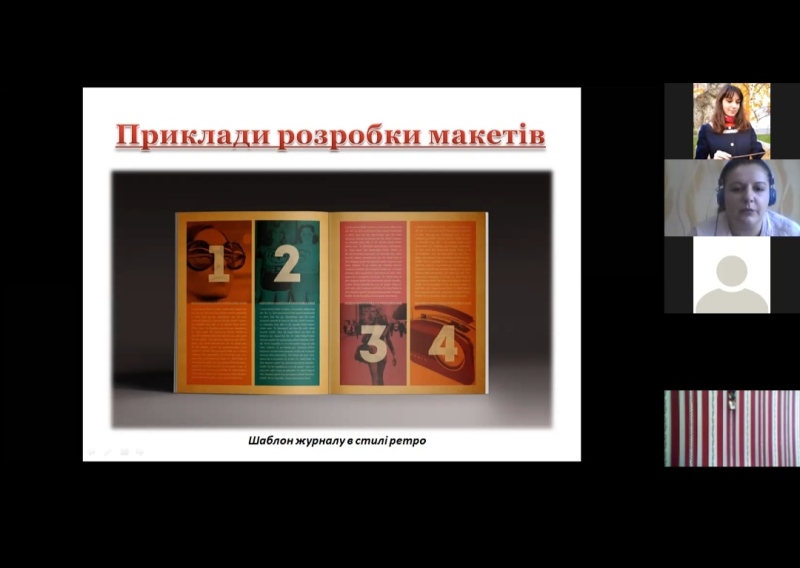 Викладачка розповіла майбутнім рекламістам про основи роботи програмного продукту Adobe InDtsign. Здобувачі мали змогу наочно розглянути інтерфейс програми, познайомилися з поняттями робочий простір та інструментарій програми. На конкретних прикладах були розглянуті можливості, що надає цей програмний продукт, з якою метою він використовується і яке практичне значення має для майбутніх рекламістів.