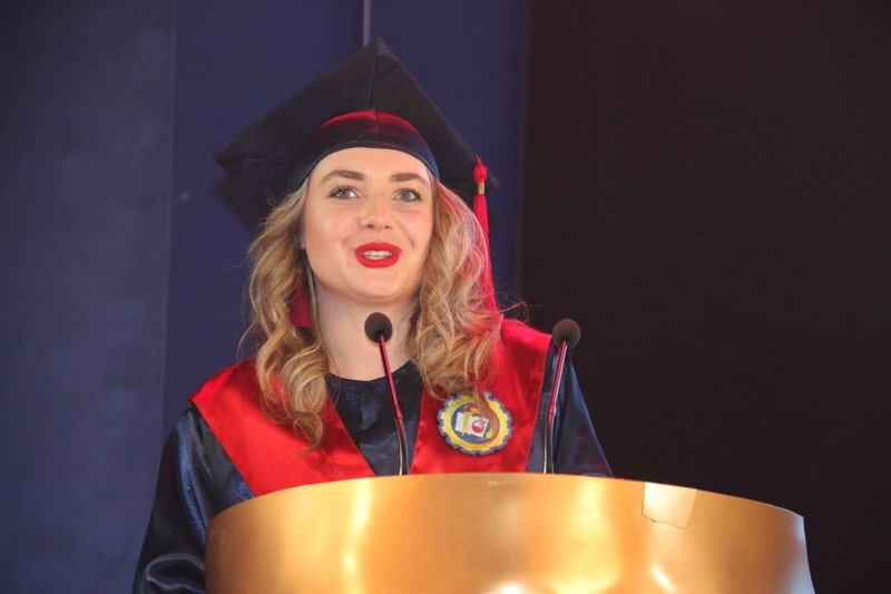Не стримувала сліз, згадуючи роки студентства й дякуючи викладачам, однокурсникам і батькам за навчання й підтримку, магістр кафедри технології оздоровчих продуктів Наталія Ярош. Не менш емоційним був виступ випускниці освітньої програми «Технологічна експертиза та безпека харчової продукції» Юлії Амаріци.