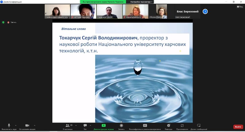 У своєму виступі директорка Навчально-наукового інституту харчових технологій Оксана Кочубей-Литвиненко відзначила перспективи освіти в галузі підготовки води, а також розвитку наукових досліджень у галузі водозабезпечення харчових виробництв.
