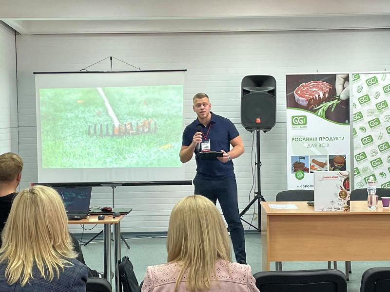 Директорка з розвитку компанії «Alma-Veko, Food» Богдана Леонова представила цікаву інформацію та основні тренди в технологіях «альтернативне м'ясо» та розробки компанії в сегменті створення рослинних аналогів м'ясних і рибних продуктів.