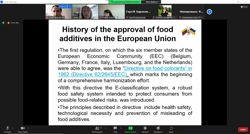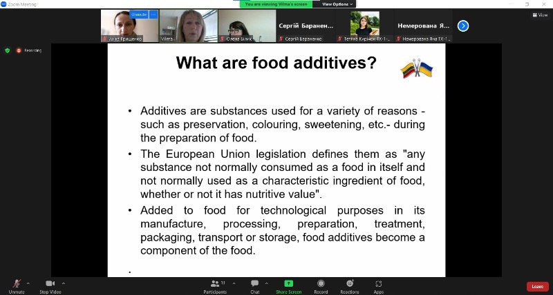 На кафедрі технології хлібопекарських і кондитерських виробів відбулася лекція «Food Additives and Genetically modified organisms in food production», яку у рамках вивчення дисципліни «Регулювання використання харчових добавок в різних технологіях та гармонізація європейських регламентів в Україні на шляху Євроінтеграції» магістрантам освітніх програм «Технології хліба, кондитерських, макаронних виробів та харчоконцентратів» і «Технології органічних харчових продуктів» прочитала докторка наук, професорка біомедичних наук Iлона Miцейкене (Литва). До лекції також приєдналися здобувачі освітньо-наукового ступеня «Доктор філософії».