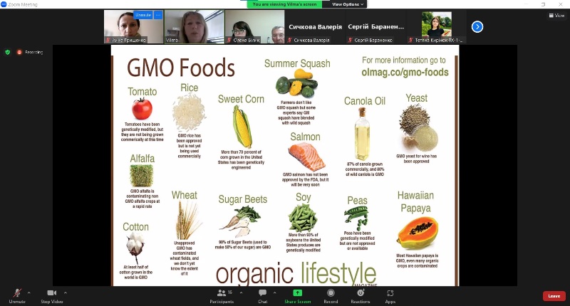 Лекторка розповіла про законодавчі акти у сфері регулювання використання харчових добавок і генетично модифікованих харчових продуктів у Європейському Союзі, про власні дослідження в цьому напрямі. Особливо цікавою була інформація щодо методів виробництва харчових добавок із використанням методів генної інженерії.