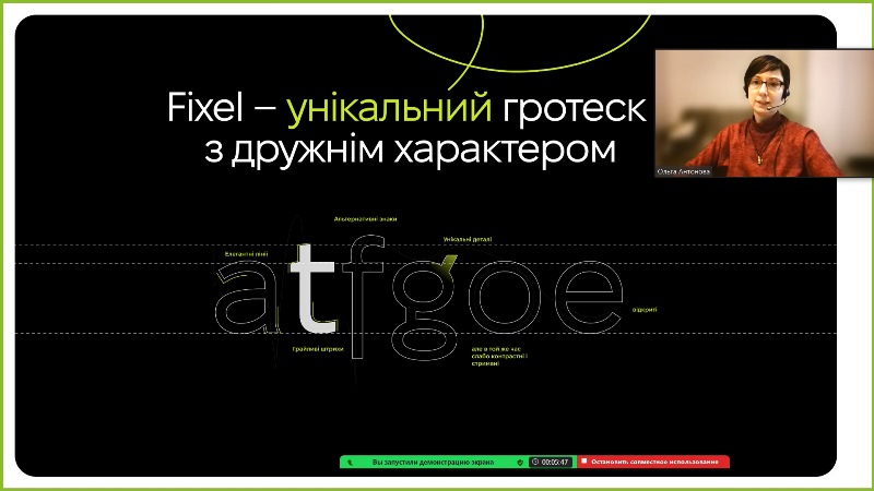 Лекторка розробила вагомий візуальний супровід лекції, поділилася кейсами гармонійного й актуального графічного дизайну в Україні та навела приклади недоцільного застосування «модних віянь».