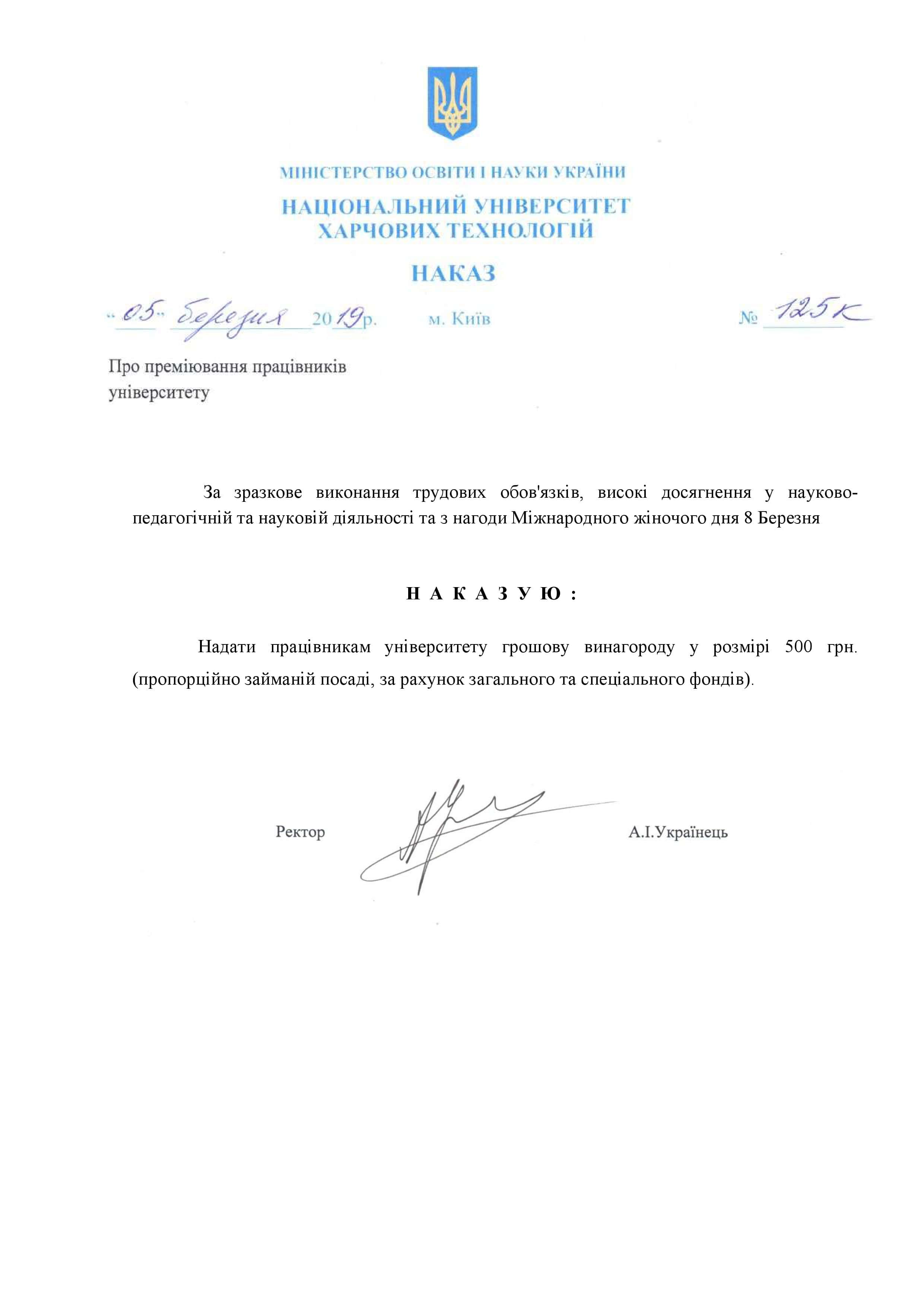 Відповідний наказ був підписаний ректором Анатолієм Українцем і оприлюднений головою Профспілки співробітників НУХТ Сергієм Василенком під час святкового концерту, що відбувся 6 березня у актовій залі університету.