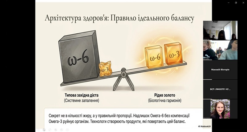 Лекція на тему «Рідке золото у твоєму раціоні: як рослинні олії керують здоров’ям та чому за цим майбутнє» розкрила слухачам світ ліпідів не просто як кулінарний інгредієнт, а як високотехнологічне «біологічне пальне» для людського організму.