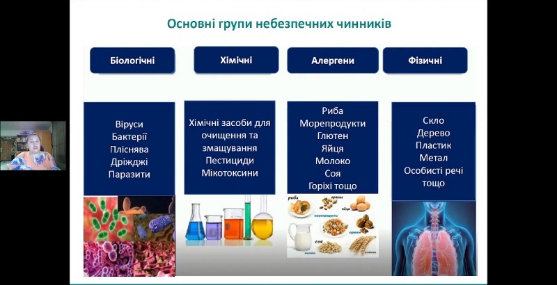 У фокусі уваги були мікробіологічні, хімічні та фізичні небезпечні чинники, а також алергени, причини їх появи на харчовому підприємстві, оцінювання ризику мікробіологічного, хімічного, фізичного та алергенного перехресного забруднення; рекомендовані заходи в рамках програм-передумов і плану керування небезпечними чинниками по зменшенню ризику мікробіологічного, хімічного, фізичного та алергенного перехресного забруднення.