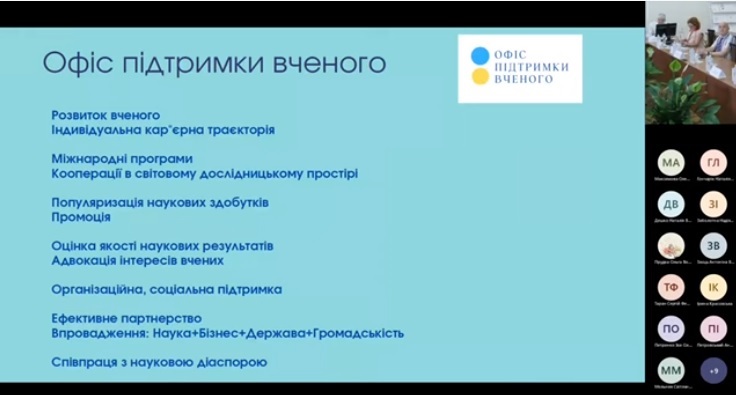 Наші науковці наголосили на важливій ролі науки в умовах воєнного стану та в післявоєнний період, узявши участь у обговоренні питань: із якими труднощами зіштовхується наука в умовах воєнного стану; яка роль науки та інновацій для розвитку освіти, підтримки економіки під час воєнного стану; як заохочувати національну солідарність, зокрема бізнесу, в інтересах спільного використання наукових досягнень різними стейкхолдерами; як актуалізувати потребу використання досягнень науки для відновлення та розвитку економіки України; як створити умови та інструменти для налагодження наукової комунікації в Україні та за її межами.