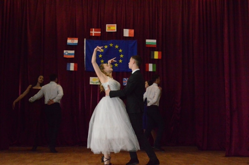 Присутні побачили вальс у виконані танцювального колективу «Драйв», який мовою танцю розповів історію кохання принца Чарльза та принцеси Діани. Зацікавив присутніх танцювальний конкурс серед глядачів, під час якого студенти мали змогу виконати танці різних країн Європи та дізнатися про їх особливості. Яскравою крапкою танцювального конкурсу став іспанський танець у виконанні студенток групи 11-ТХ і контемп у виконанні студентів груп 41-К та 11-К.