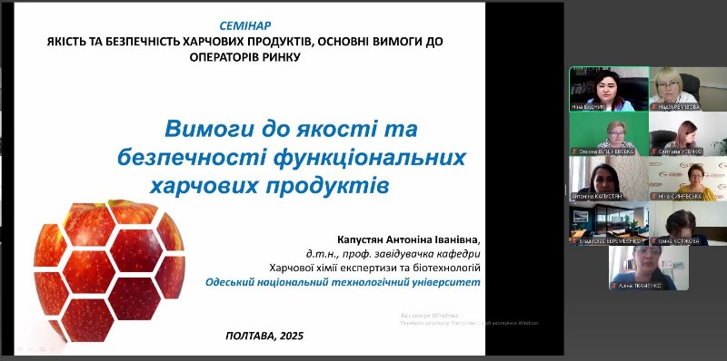 27 червня 2025 року Полтавський державний аграрний університет, спільно з Науково-методичним центром вищої та фахової передвищої освіти, провів семінар «Якість та безпечність харчових продуктів, основні вимоги до операторів ринку». Захід мав на меті підвищення обізнаності та професійної компетентності учасників щодо сучасних вимог до якості та безпечності харчових продуктів.