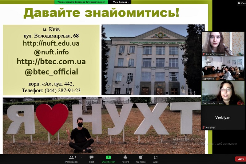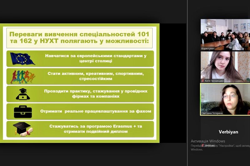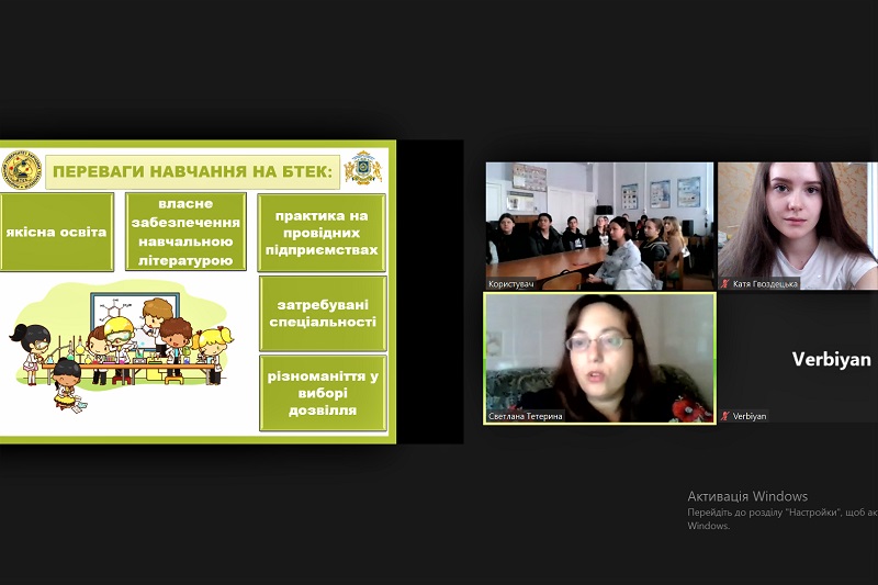 РR-кампанія на факультеті біотехнології та екологічного контролю набуває все нових обертів. Нещодавно профорієнтаційна команда факультету зустрілася онлайн із учнями Першого Київського медичного коледжу та Медичної гімназії 33 м. Києва, відвідала навчальні заклади Київщини, запрошуючи школярів на День відкритих дверей університету, а зараз поспілкувалася зі старшокласниками Хацьківської загальноосвітньої школи І-ІІІ ступенів. Організації цією зустрічі опікувалась студентка-біотехнолог Анастасія Литвин за сприяння завучки школи Ольги Буханько та шкільного психолога Лідії Зайвенко.