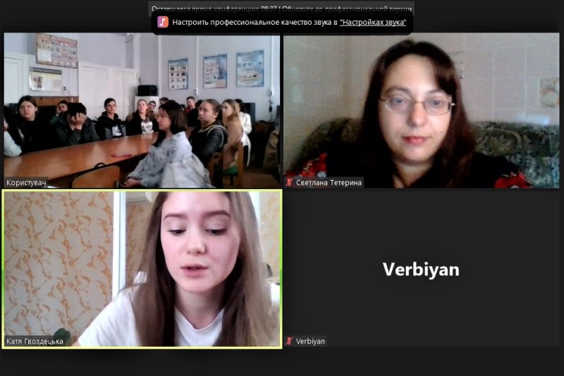 Тепер ще один навчальний заклад дізнався про наш університет. І все це завдяки ініціативі першокурсниці Анастасії Литвин, яка не просто організувала зв’язок зі школярами своєї alma mater, а керувала конференцією зі школи та спілкувалася із старшокласниками до початку зустрічі і після її завершення.