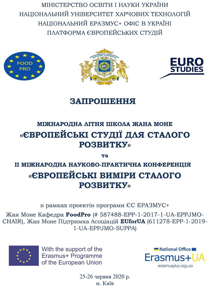 Реєстраційні форми Школи Жана Моне та Міжнародної конференції з Європейських Вимірів Сталого Розвитку відкриті, подання тез доповідей для зареєстрованих учасників – до 10 червня 2020 р. на електронну пошту nuft_jean_monnet@ukr.net