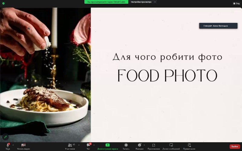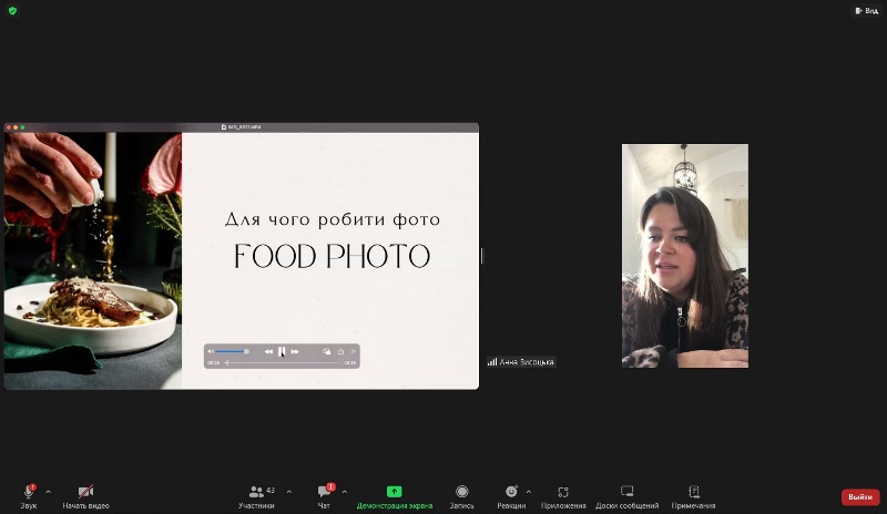 Спікерка ознайомила присутніх із секретами успішного маркетингу для закладів готельного та ресторанного господарства, зокрема, як впливає «Фуд-фото» на популяризацію закладу та його брендинг. Також розповіла як використання інструменту «Фуд-фото» допомагає навіть початківцям зробити успішний старт у сфері гостинності. Досить важливим показником є розвиток власного брендингу в соціальних мережах. Використання інструменту «Фуд-фото» дає змогу розробити захоплюючу таргетовану рекламу, яка збільшить частку потенційних відвідувачів.