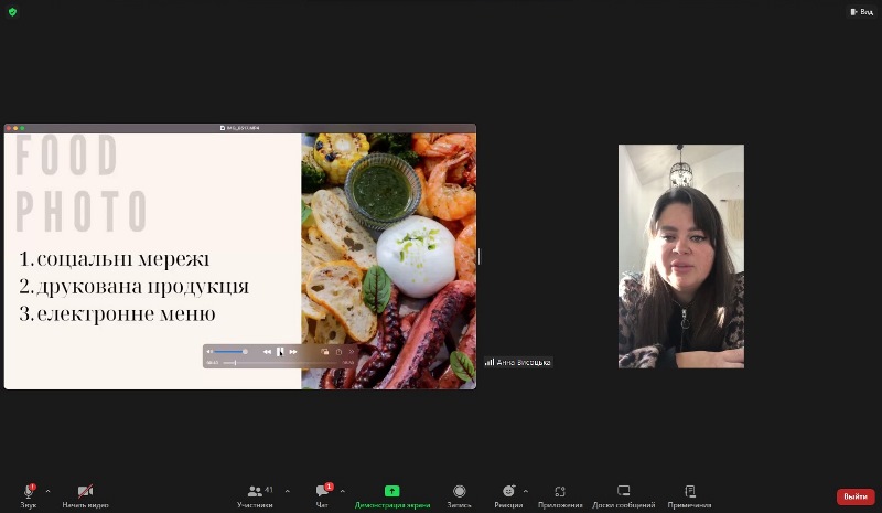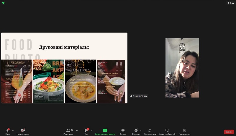 20 листопада в рамках дисципліни «PR-технології та маркетинг в готельно-ресторанному господарстві» для здобувачів третього курсу спеціальності 241 «Готельно-ресторанна справа» відбувся гостьовий онлайн-лекторій маркетологині ресторанів «Oasis», «RICH», «RICH park», «Pasta e Vino», «Мон Блан», готелю «Франція» 5 зірок, розташованих у м. Вінниця, Анни Висоцької.