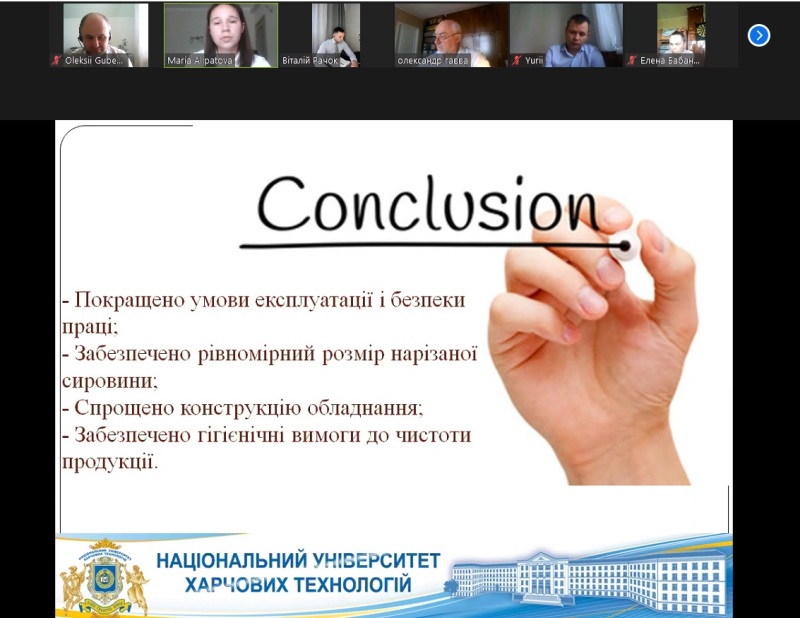Екзаменаційна комісія одноголосно прийняла рішення про присудження освітнього ступеня «бакалавр» з інжинірингу харчових виробництв Марії Аліпатовій, Максиму Споловичу, Сергію Линнику, Ярославу Косюченку, Дмитру Черненку, Віталію Ковбасенку і Руслану Байрамову. Всі представлені на цьому захисті проекти отримали високі оцінки.