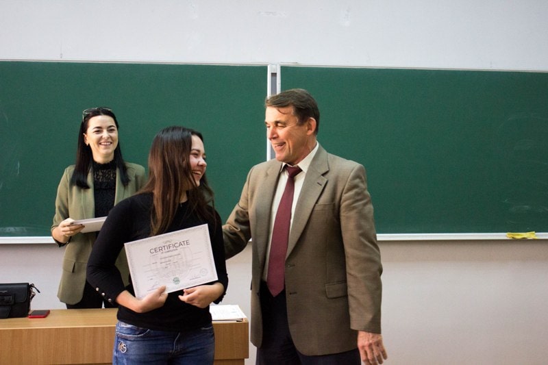 16 жовтня відбулося офіційне вручення сертифікатів міжнародної практики. Болгарські партнери подякували завідувачу кафедри Віктору Доценку і відповідальній від кафедри, доценту Олені Шидловській за високий рівень організації практики та освітньо-професійну підготовку здобувачів вищої освіти.