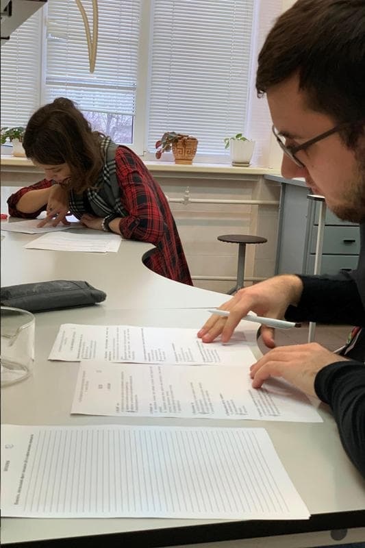 Час пролетів непомітно, студенти здали роботи і комісія у складі професора Віктора Стабнікова і доцентів Юрія Карлаша та Оксани Скроцької приступила до їх перевірки.