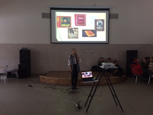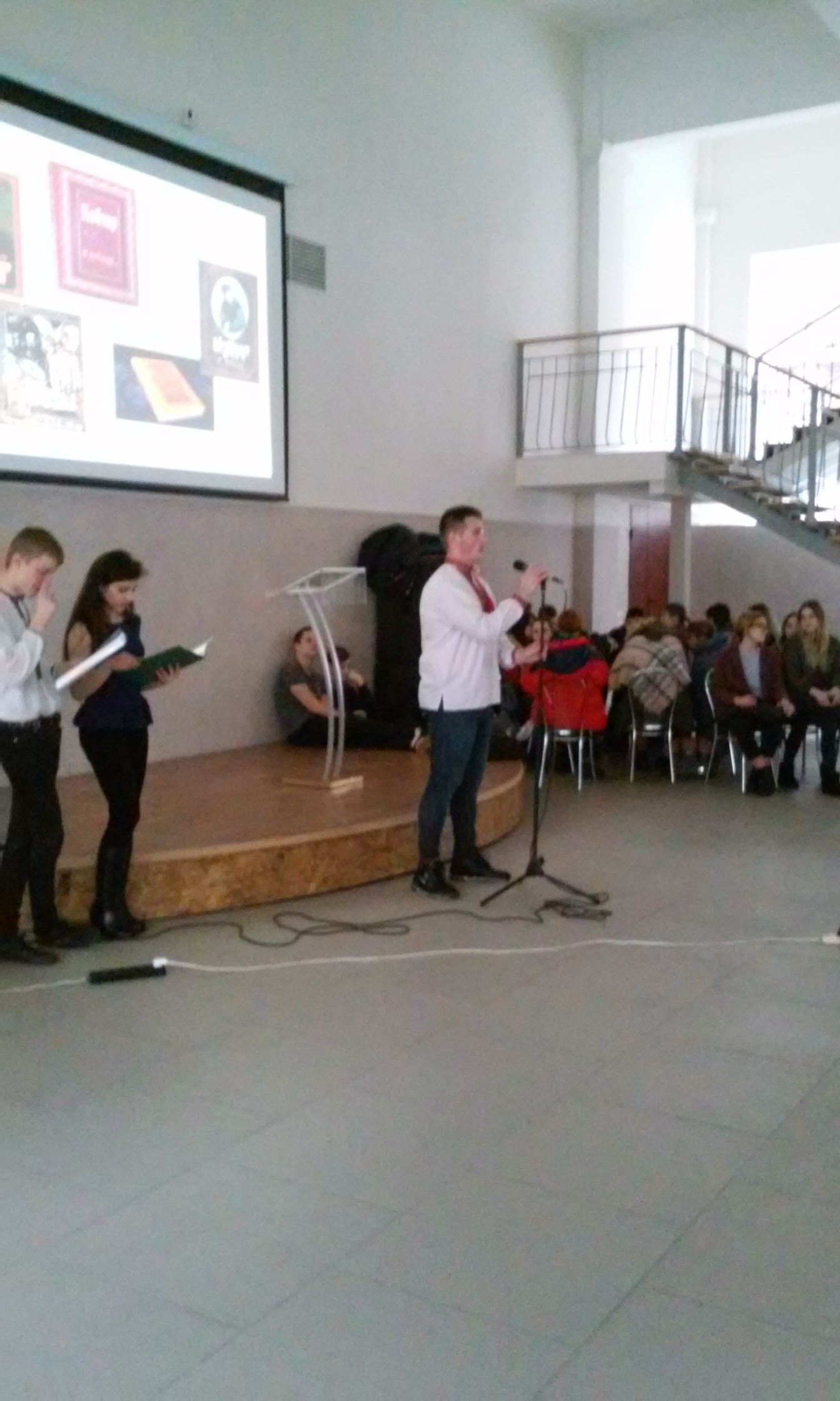 Ведучі свята Андрій Пархоменко (ТУ 1-11) та Анна Вовк (ТЖ 1-3М) провели вікторинуна краще знання фактів із життя поета англійською мовою.