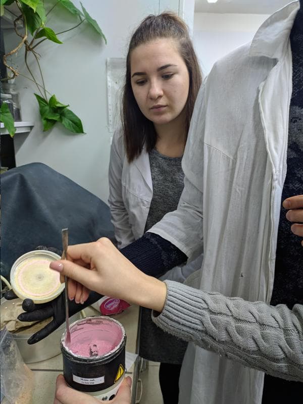 Цього разу студентам випала нагода поспілкуватися з головним колористом ТОВ «Астра-Косметик», випускницею кафедри Іриною Івченко. Всі учасники заходу мали змогу на власні очі побачити, як працюють кваліфіковані й досвідчені працівники сфери виробництва косметичних засобів і набути практичні навички у виробництві порошкоподібних пудр. Майстер-клас видався цікавим, високоякісним, продуктивним, інформативним, насиченим. Ірина Івченко вдало поєднала науково-теоретичну та практичну роботу.