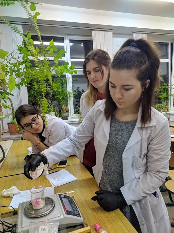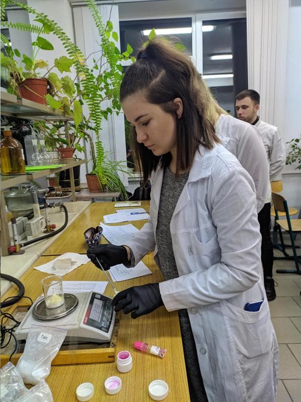 У хіміків-технологів у рамках лабораторних занять з дисципліни «Хімія та технологія косметичних засобів» відбувся майстер-клас по виготовленню косметичних засобів декоративного призначення у вигляді порошкоподібних пудр. Організатор заходу – доцент кафедри технології жирів, хімічних технологій харчових добавок та косметичних засобів Наталія Сабадаш, яка систематично запрошує до університету фахівців галузі.