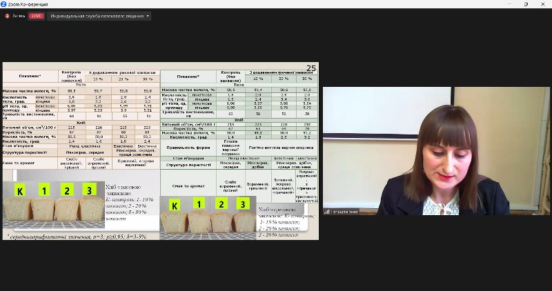 Дисертаційну роботу «Удосконалення технології хліба з використанням заквасок з борошна круп’яних культур» здобувачка виконала під керівництвом к.т.н., доцентки кафедри технології хлібопекарських і кондитерських виробів Лариси Михонік.