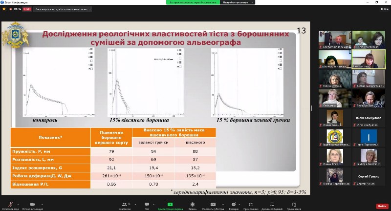 Засідання разової спеціалізованої вченої ради відбулося під головуванням д.т.н., професора, завідувача кафедри технології хлібопекарських і кондитерських виробів нашого університету Володимира Ковбаси. У засіданні ради також взяли участь рецензентки – д.т.н., професорка кафедри готельно-ресторанної справи Тетяна Сильчук і доцентка кафедри технології хлібопекарських і кондитерських виробів Наталія Фалендиш, офіційні опонентки – д.т.н., завідувачка кафедри готельно-ресторанного бізнесу Одеського національного технологічного університету Тетяна Лебеденко та к.т.н., доцентка, завідувачка кафедри технології хлібопродуктів і кондитерських виробів Державного біотехнологічного університету Тетяна Гавриш. Рецензентки та офіційні опонентки відзначили актуальність теми представленої до захисту роботи, її наукову новизну та практичну цінність.