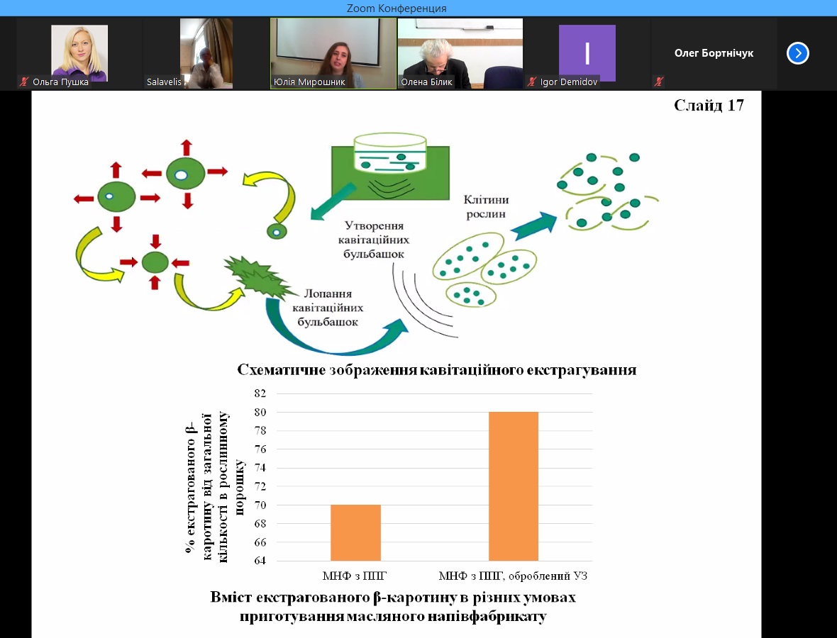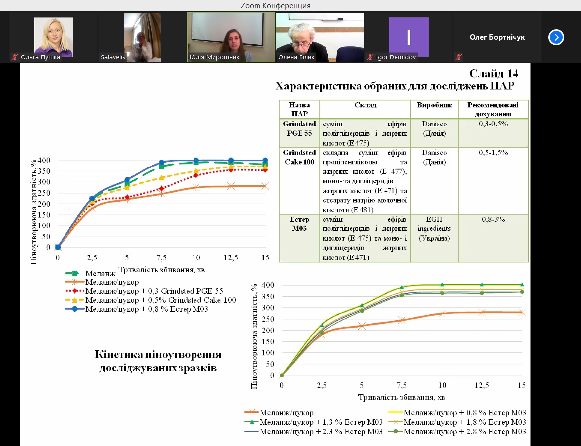 29 квітня 2021 р. асистентка кафедри готельно-ресторанної справи Юлія Мирошник представила на розгляд спеціалізованої вченої ради Д 26.058.07 дисертаційну роботу «Удосконалення технології борошняних кондитерських виробів з нетрадиційною рослинною сировиною». Науковий керівник – д.т.н., професор, декан факультету готельно-ресторанного та туристичного бізнесу Віктор Доценко.