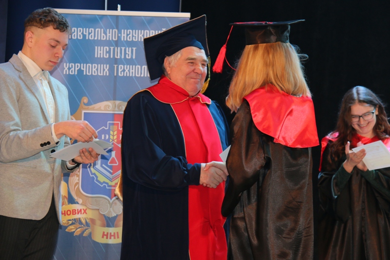 Щирі напутні слова адресували своїм вихованцям директор ННІ ХТ Оксана Кочубей-Литвиненко, заступник директора ННІ ХТ з навчально-виховної роботи Наталія Пушанко, завідувачі випускових кафедр – технології консервування, проректор університету з навчально-виробничої діяльності та розвитку Олександр Бессараб, технології цукру і підготовки води Наталія Гусятинська, технології хлібопекарських і кондитерських виробів Володимир Ковбаса, технології зберігання і переробки зерна Олег Шаповаленко, біотехнології продуктів бродіння і виноробства Анатолій Куц, технології м’яса і м’ясних продуктів Людмила Пешук, технології молока і молочних продуктів Галина Поліщук, технології жирів та парфумерно-косметичних продуктів Тамара Носенко, експертизи харчових продуктів Світлана Усатюк, а також доцент кафедри технології оздоровчих продуктів Наталія Стеценко