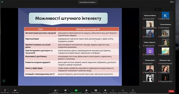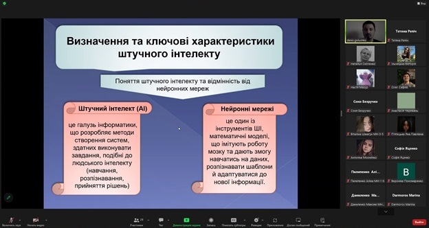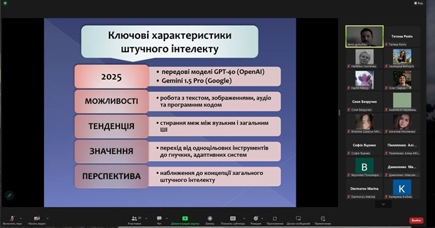 Здобувачі вищої освіти виявили високу зацікавленість у темі, активно долучалися до обговорення, ставили запитання, висловлювали власні погляди на переваги й ризики використання інтелектуальних технологій у майбутньому професійному середовищі. Атмосфера заходу була жвавою та інтерактивною, сприяла розвитку критичного мислення, цифрової обізнаності та усвідомленого ставлення до технологічних інновацій.