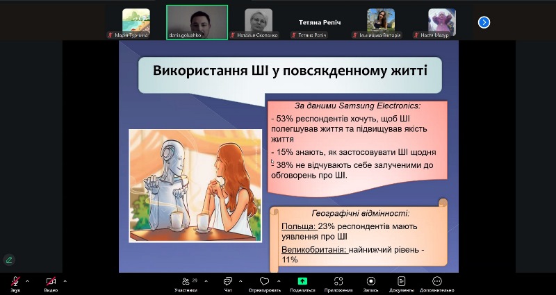 Особливу увагу було приділено етичним і правовим аспектам упровадження технологій, а також ключовим ризикам – загрозі конфіденційності даних, алгоритмічній упередженості, надмірній залежності від технологій та потенційній втраті робочих місць у результаті автоматизації. Обговорювалися шляхи мінімізації цих викликів і формування принципів відповідального використання штучного інтелекту.