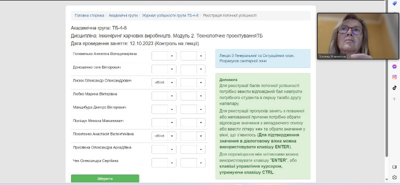 На кафедрі біотехнології продуктів бродіння і виноробства відбулося відкрите заняття доцентки кафедри Зоряни Романової з дисципліни «Інжиніринг харчових виробництв» для здобувачів 4 курсу, збірної групи ТБ-4-8, 8 ск.