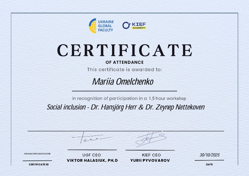 Участь у семінарі дозволила викладачам кафедри розширити уявлення про сучасні підходи до соціально-економічної політики та отримати цінні ідеї для подальшої інтеграції принципів соціальної інклюзії в освітній процес.