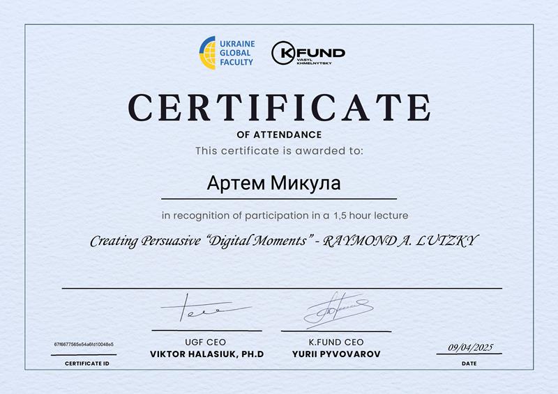 Здобувачі освіти не лише опановують актуальні теми світового масштабу, а й розвивають навички самоосвіти, критичного аналізу, командної роботи й особистої відповідальності за професійне зростання. Успішне завершення курсів підтверджується сертифікатами міжнародного зразка.