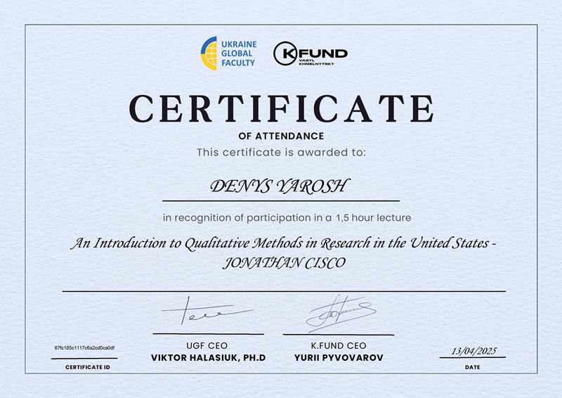 – «An Introduction to Qualitative Methods in Research in the United States» (Jonathan Cisco) – методи якісних досліджень, їхня роль у науці та практичних дослідженнях.